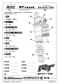 RT系列集結來自各項賽事優秀成績的參數,精心調製成具有賽道靈魂DNA的避震器,您可以調整需要的壓側阻尼感受,同時具有伸側阻尼及彈簧預載調整機構,能夠全方面的達到您所想要的騎乘感受!可客製化配色訂製出具有個人風格與特色的外觀,兼具視覺、個性、實用、舒適與操控的騎乘感受!